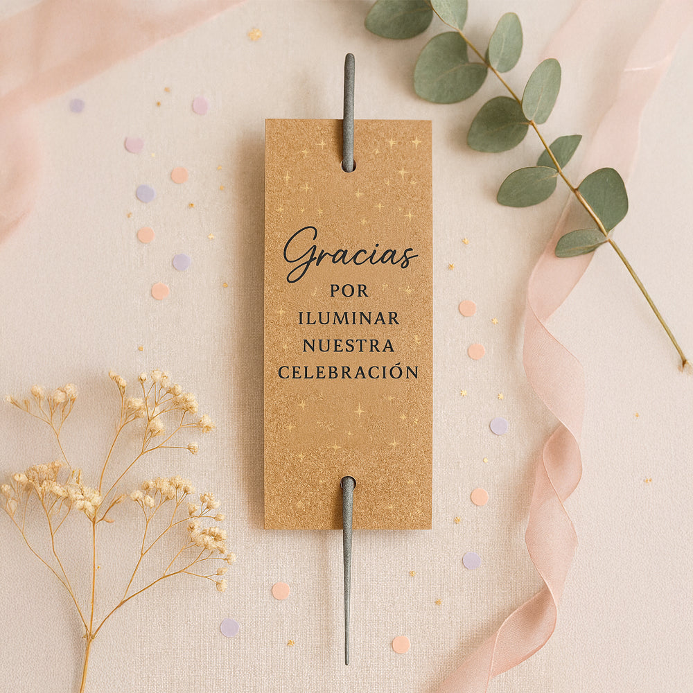 Ilumina tu boda con bengalas personalizadas. Un detalle único y romántico para sorprender a tus invitados y crear recuerdos mágicos.