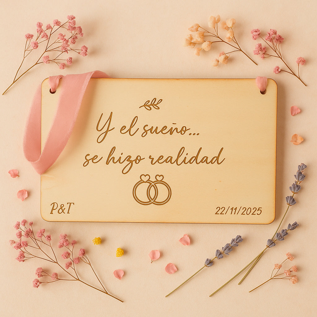 Cartel de madera Aquí viene la novia. Un detalle personalizado y emotivo para hacer aún más especial la entrada a tu boda.