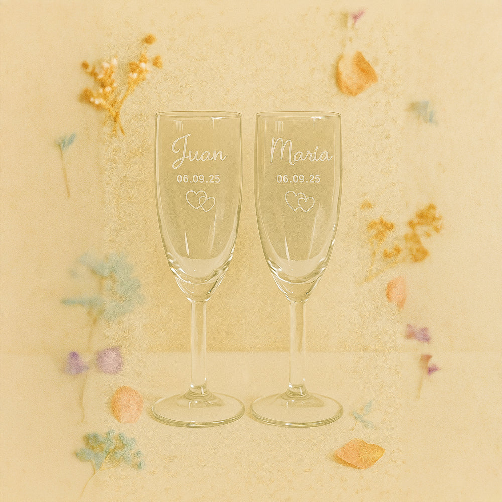 Copas personalizadas para boda. Un detalle elegante y único para brindar y recordar el día más especial de tu vida.