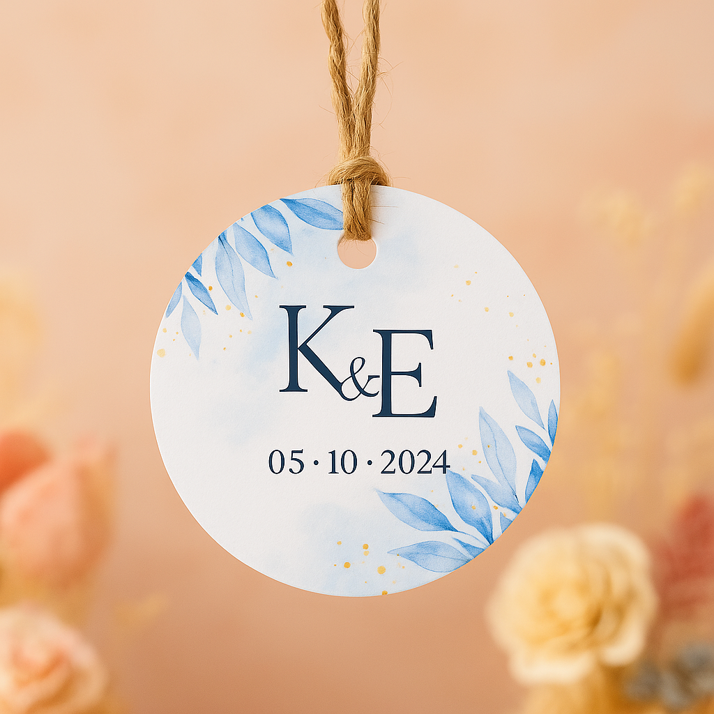 Etiqueta para detalles de Boda | Floral azul