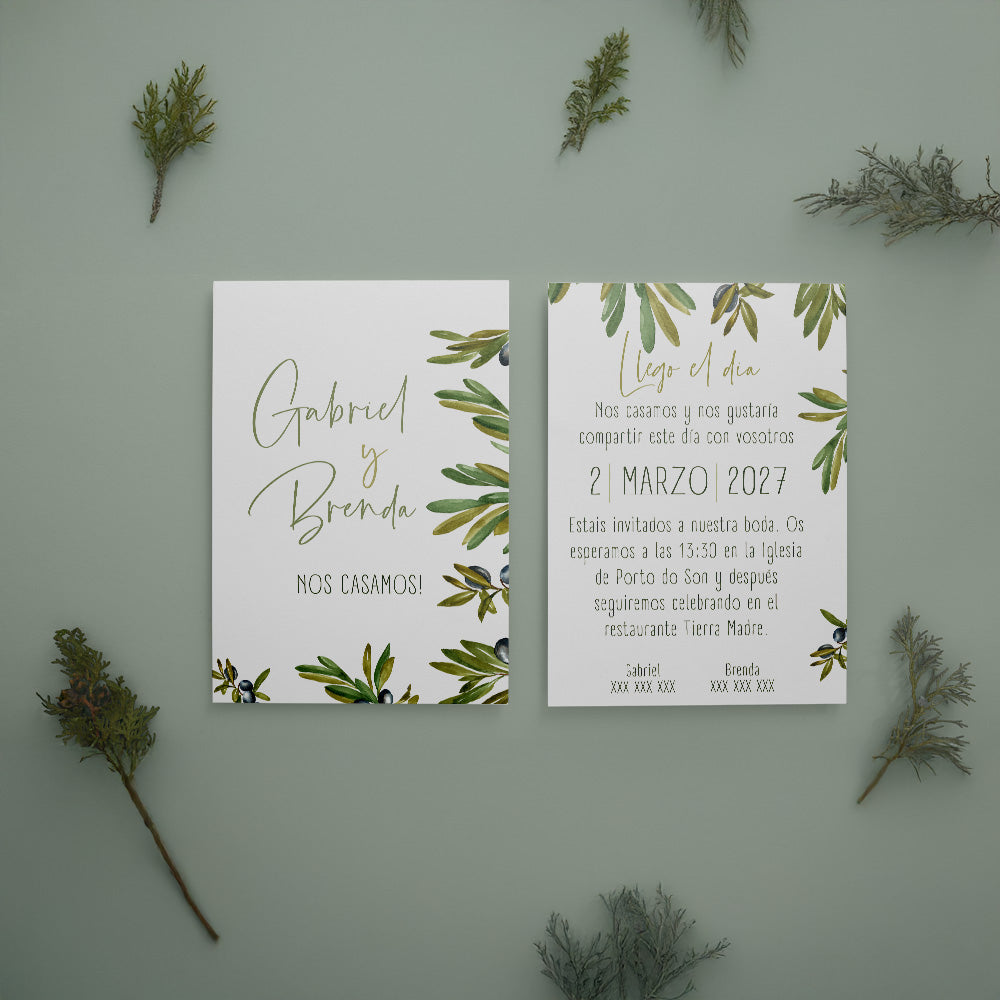 Invitaciones de boda personalizadas y elegantes con papeles premium, impresión profesional (digital, letterpress, foil) y acabados artesanales como lacre y sobres forrados. Diseños minimalistas, rústicos o acuarela, sets a juego (Save the Date, RSVP). Muestras y envío rápido en España.
