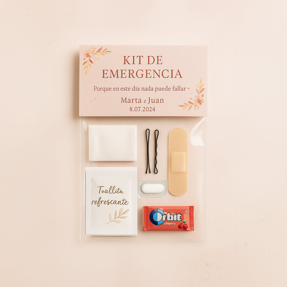 Kit de emergencia para bodas personalizado. Un detalle práctico, original y útil que sorprenderá a todos tus invitados.