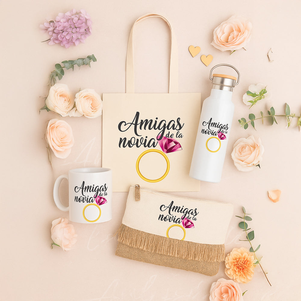 Para sorprenderla en la pedida, el getting ready o el gran día. Diseñamos regalos personalizados para la novia con dedicatorias, nombres/fecha e iniciales, tipografías y colores coordinados con vuestras invitaciones y una presentación elegante. Cuidamos cada detalle para que sea un recuerdo único, con opciones económicas y packs según vuestro estilo.