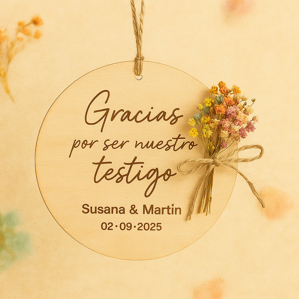 Regalos para los testigos con dedicatoria “Gracias por ser nuestro testigo”. Personaliza nombres/fecha y colores, diseño a juego con tu papelería.