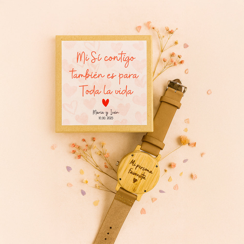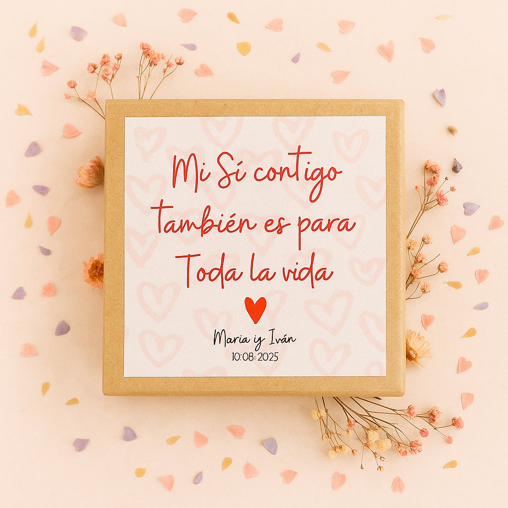 Para ese grupo que siempre está ahí. Diseñamos regalos personalizados para amigos con nombres y fecha, mensajes a tu estilo (divertidos o emotivos) y estética coordinada con vuestras invitaciones. Acabados cuidados, presentación elegante y opciones de packs para la cuadrilla.