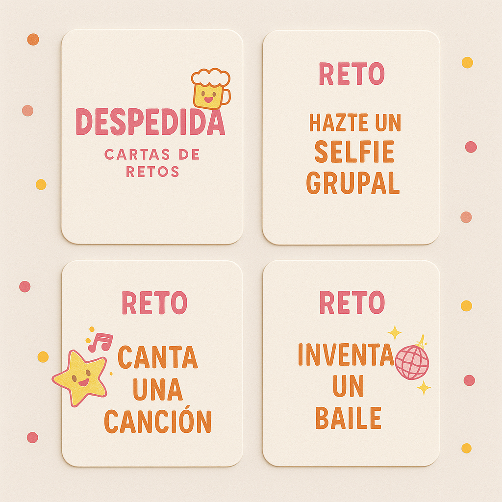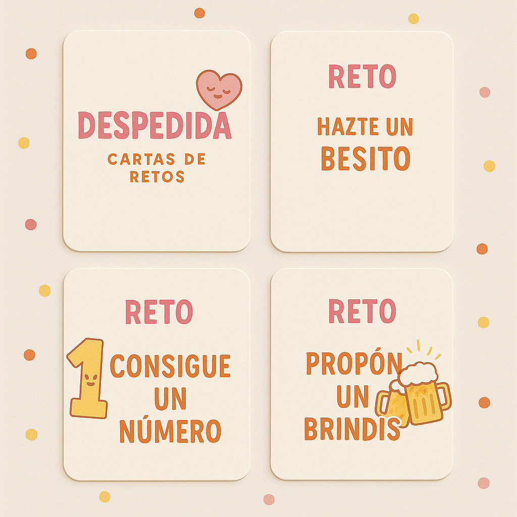 Tarjetas de retos para bodas con 20 desafíos divertidos. Un juego original y personalizado para sorprender y animar a tus invitados.